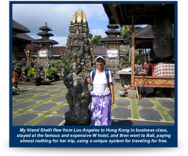 But when I heard about Shelli’s most recent trip to Hong Kong and Bali, I knew I needed to master the same system she uses to get free travel. I knew once I learned her secrets, I’d never go back to paying for my dream trips with cash or traveling in economy, and neither will you.